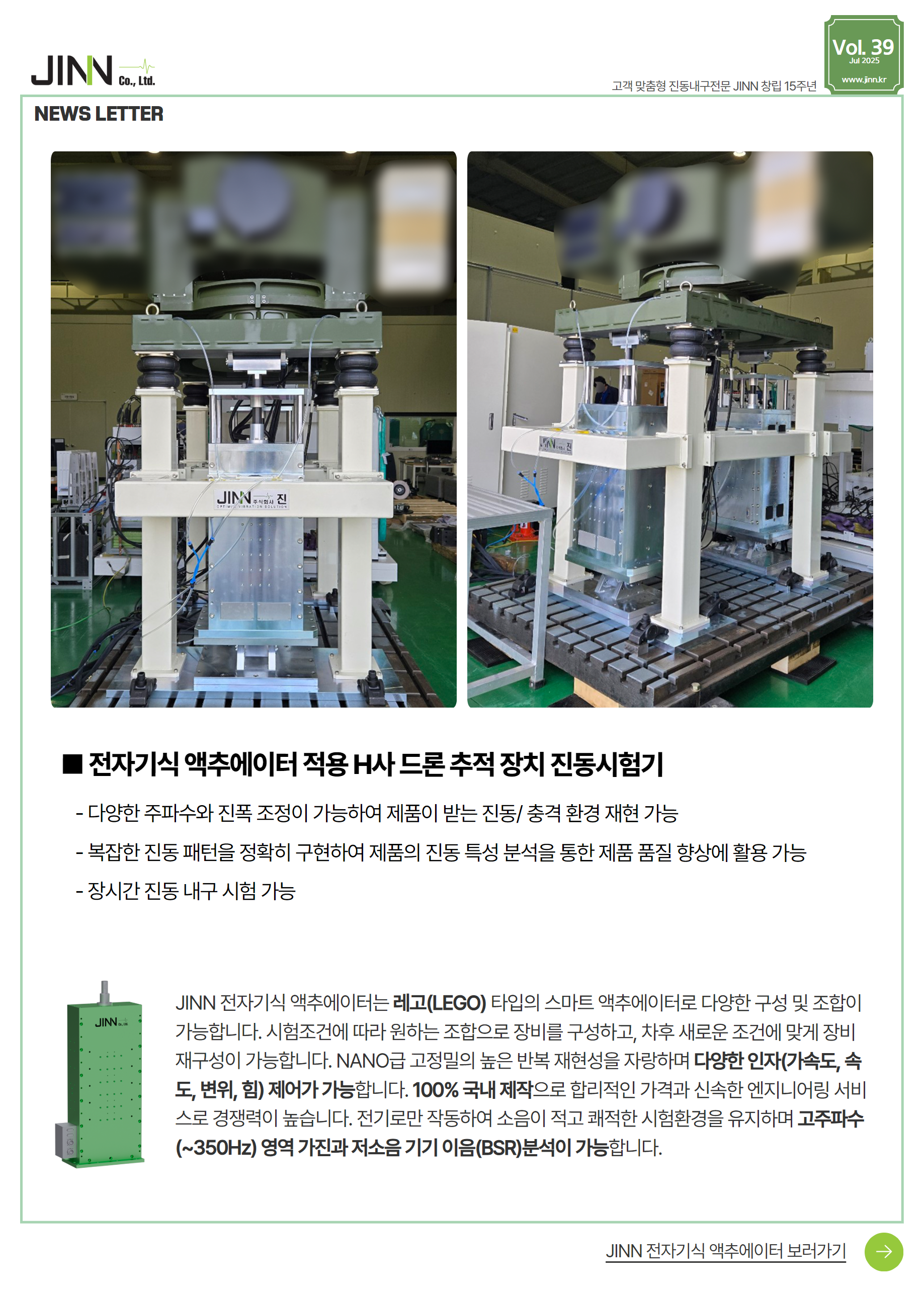 [JINN 뉴스레터 39호] 드론추적장치 진동환경 재현 시험